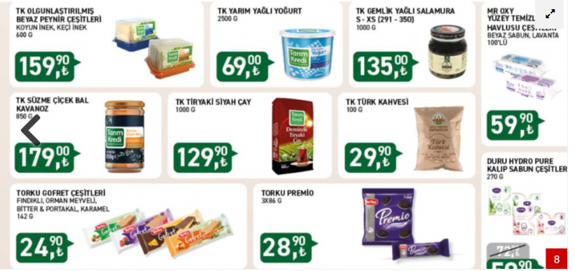 Türkiye'de enflasyonu düşürmek için kurulan Tarım Kredi Marketleri 7 gün sürecek indirim kampanyasını duyurdu. Bu doğrultuda 16 ürün dip fiyatı satılacak. Enflasyonun yükselmesi için Türkiye Tarım Kredi Kooperatifi Piyasaları kuruldu. Halk arasında 'en ucuz market' olarak bilinen Tarım Kredi haftalık kampanyalarını duyurmaya devam ediyor.